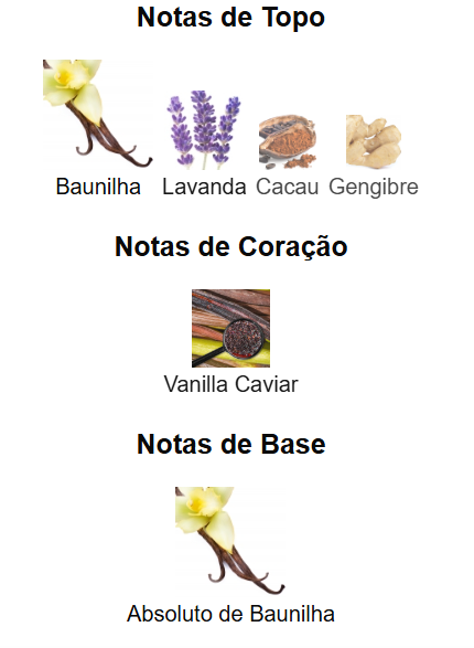Um perfume que mistura baunilha, lavanda, cacau, em um abraço dourado, cremoso, envolvente.